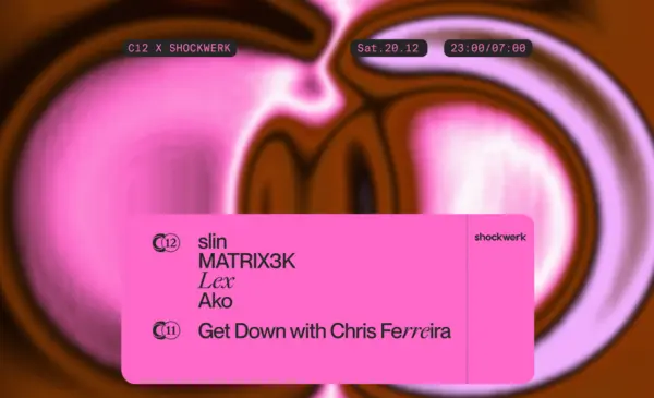 A full-vinyl night across two rooms starring long time players and freshly new talents from Shockwerk and C12 teams: slin, Matrix3k, Chriss Ferreira, Lex and Ako.
