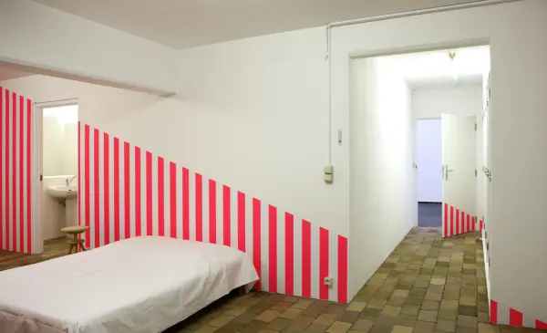 The exhibition is further framed by a documentary presentation that contextualizes the historical significance of Chambres d’Amis. At its heart is the iconic work Le Décor et son Double by French artist Daniel Buren, reinstalled in close collaboration with the Herbert Foundation.